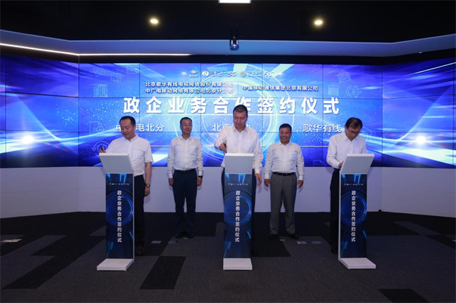 8月16日,歌华有线、中广电移动北京分公司与北京移动签署《政企业务合作框架协议》。中国广电副总经理、歌华有线党委书记、董事长郭章鹏与北京移动党委书记、董事长、总经理张冬见证签约。