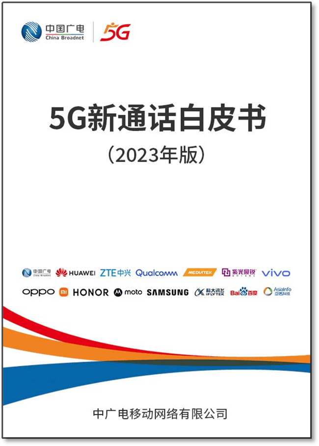 今日,中国广电在“2023世界电信和信息社会日大会”期间发布了《5G新通话白皮书(2023年版)》。白皮书基于最新产业发展成果,阐述了5G新通话的市场价值、标准体系、网络架构、部署方案及终端技术要求,提出了创新应用场景和产业推进倡议,旨在为芯片、终端、网络、平台端到端高质量支持5G新通话提供参考与指引,携手产业界加速推动相关服务快速健康发展。